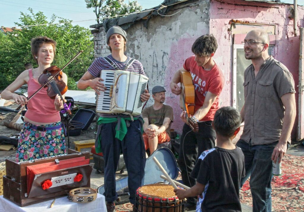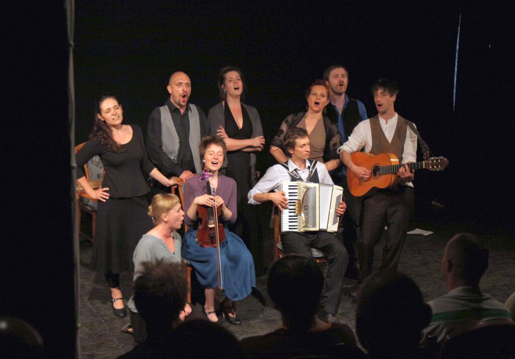 A concert as a journey, a travel, a path from city to city, from meeting to meeting, from song to song. Passing through diverse musical landscapes we aim to build a map of different countries, different cities and different people, drawing from the tradition of polyphonic singing, travelling Roma music and materials gathered by Jubilo Ensemble members in cultural expeditions to various European countries. The harmonies we create in the space will be symbolically and physically expressed by theatrical actions and performative elements, enriching the musical dramaturgy and leading us towards the next step of HIDDEN CITIES – the creation of a performance.